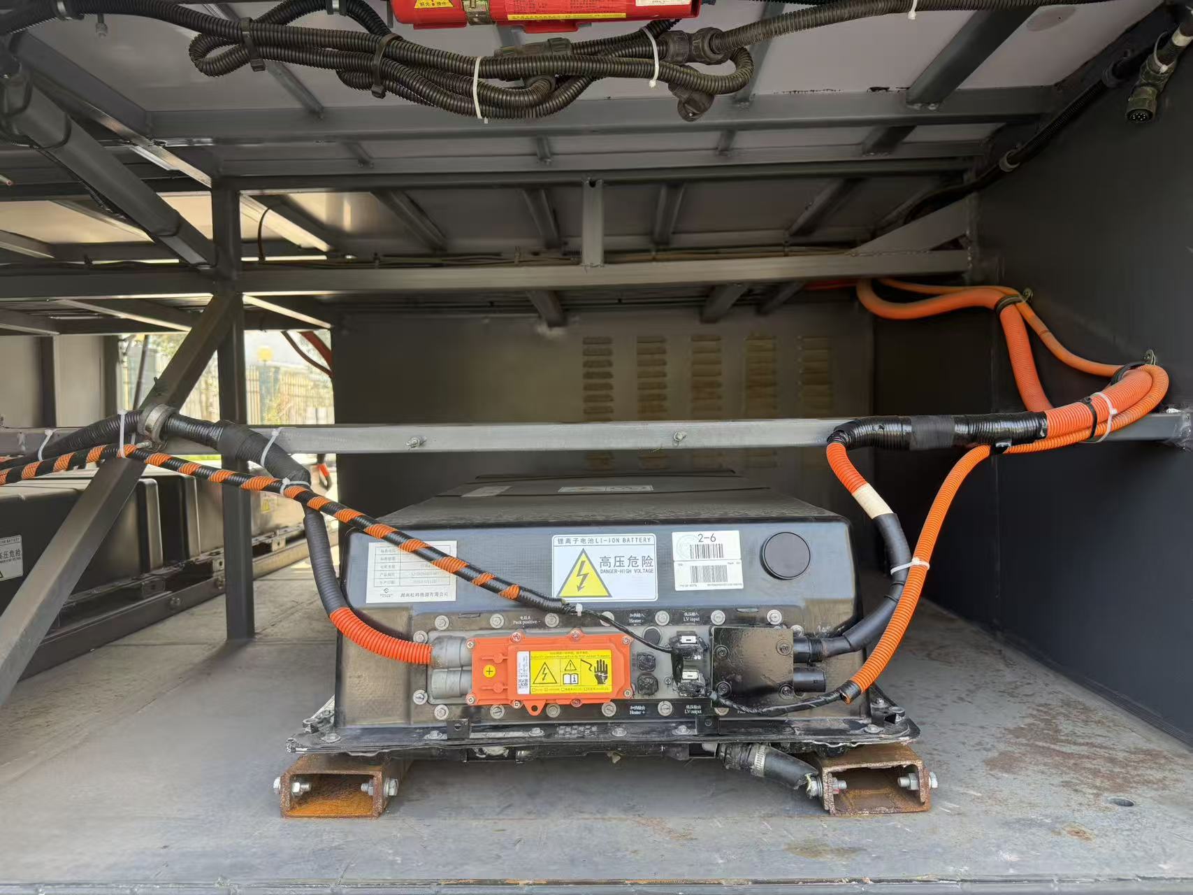 公司对湖南工商大学校车进行电池箱现场维修工作。